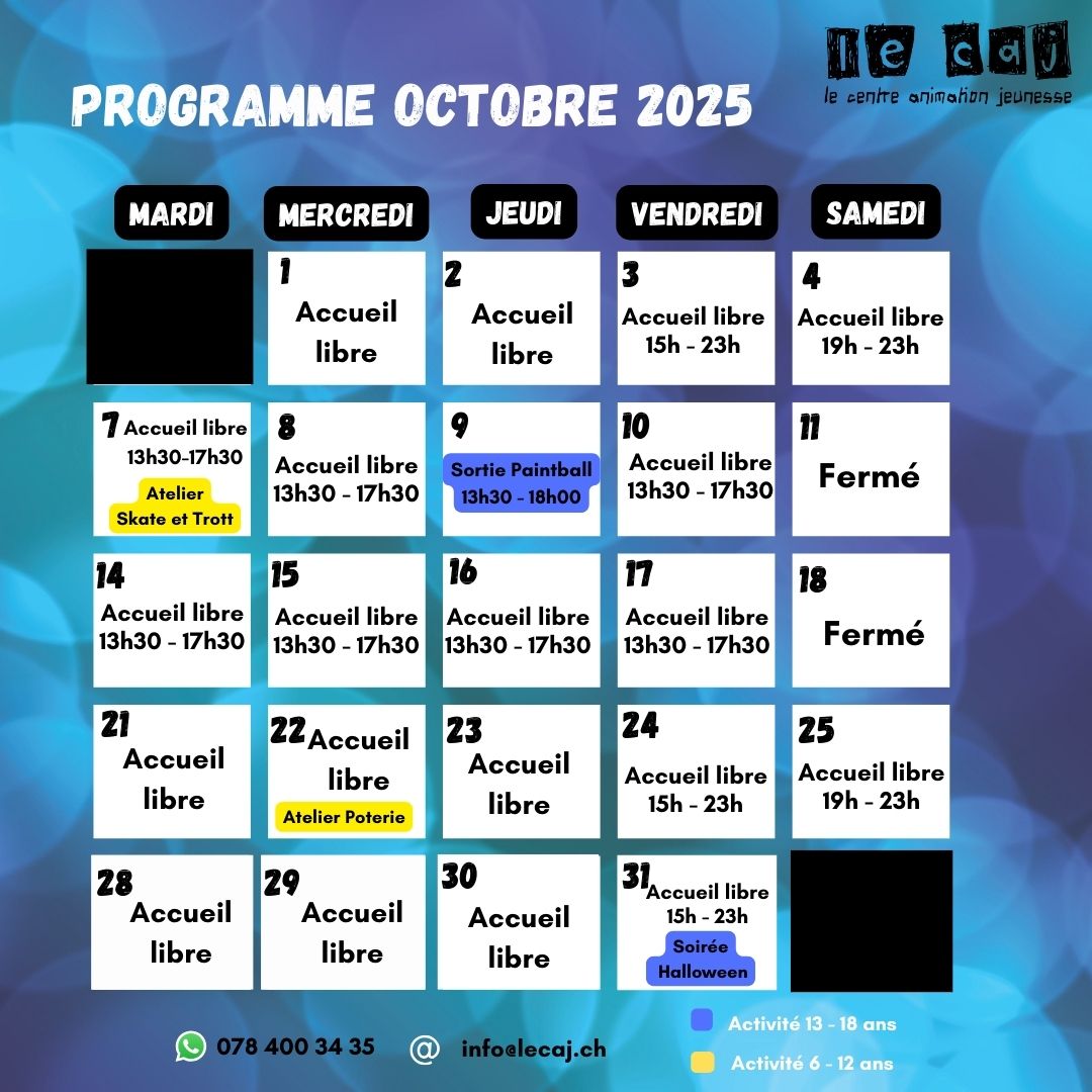 Durant les vacances scolaires le CAJ est ouvert du mardi au vendredi de 13h30 à 17h30