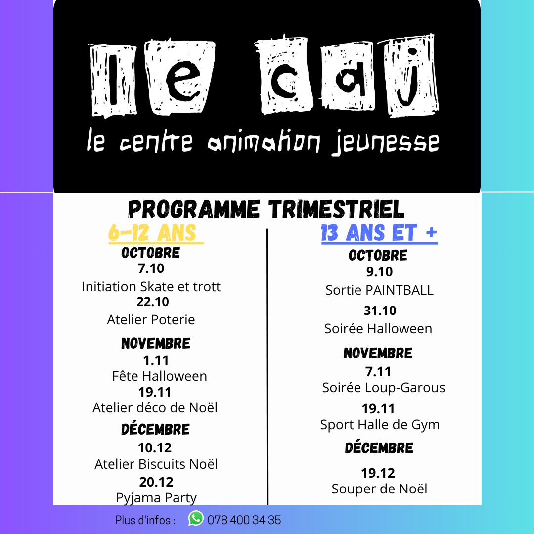 Nous avons un programme mensuel et organisons des activités de loisirs, de prévention et des sorties tout au long de l’année