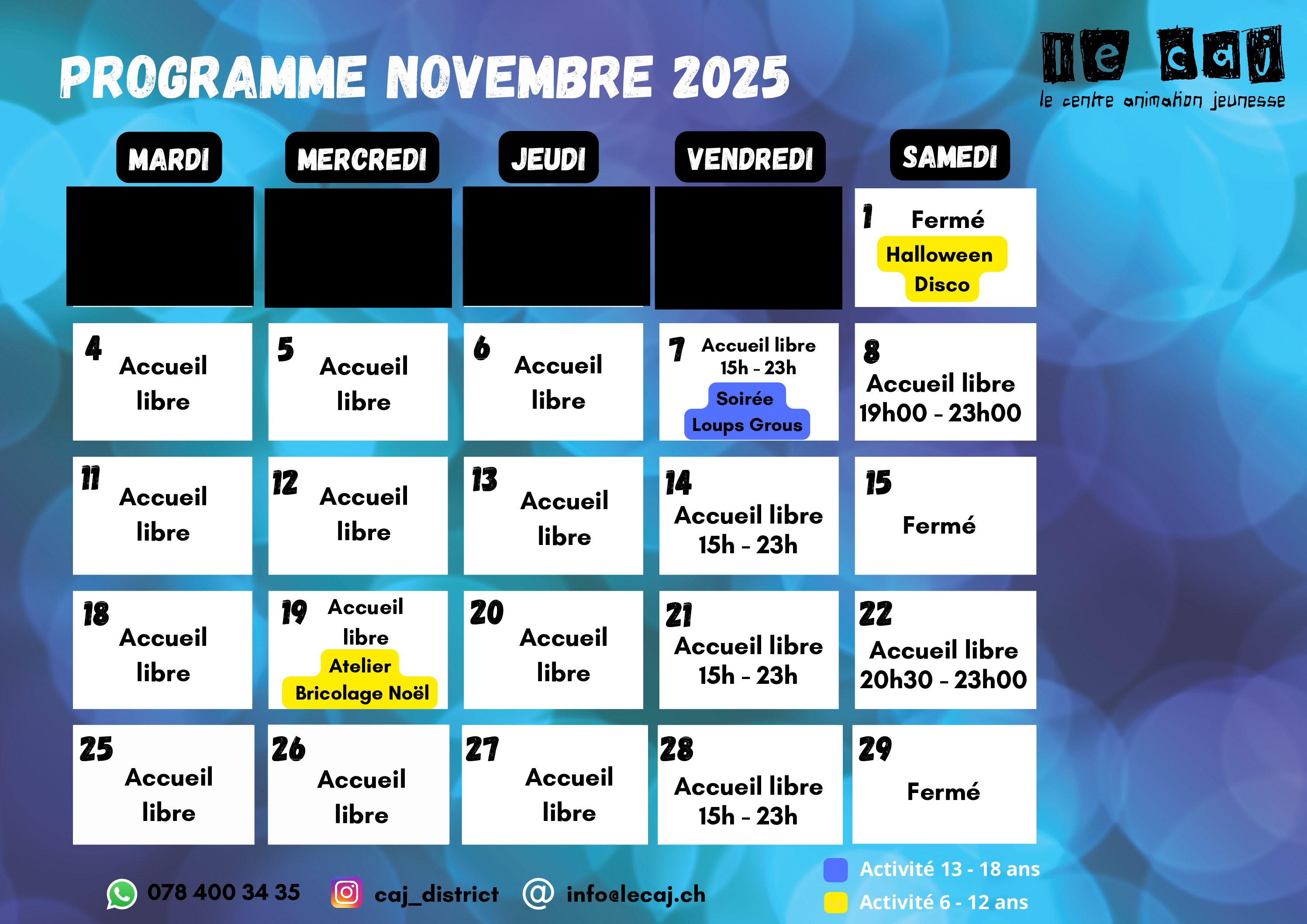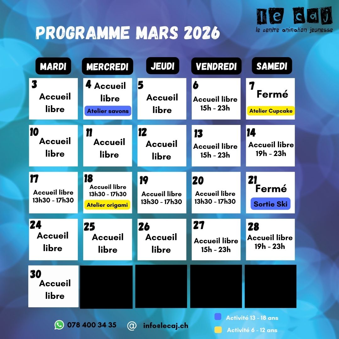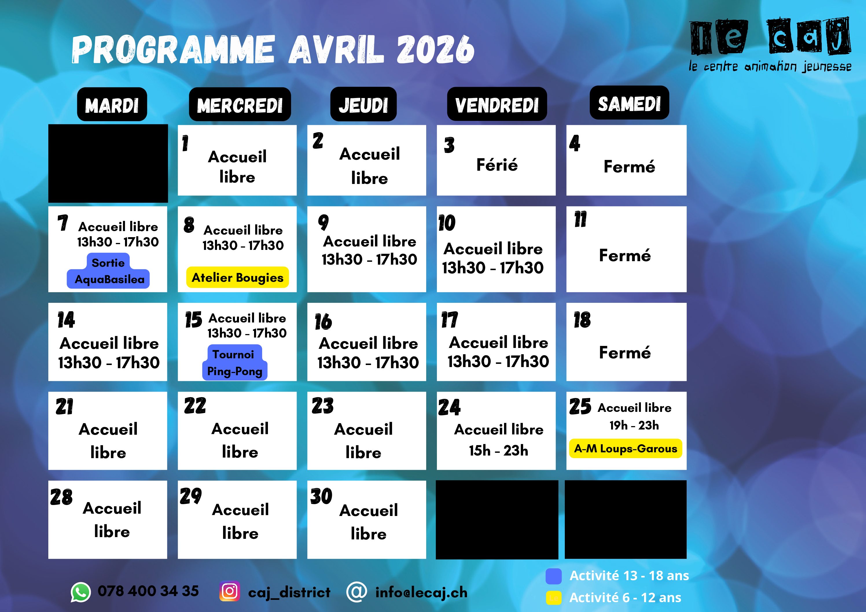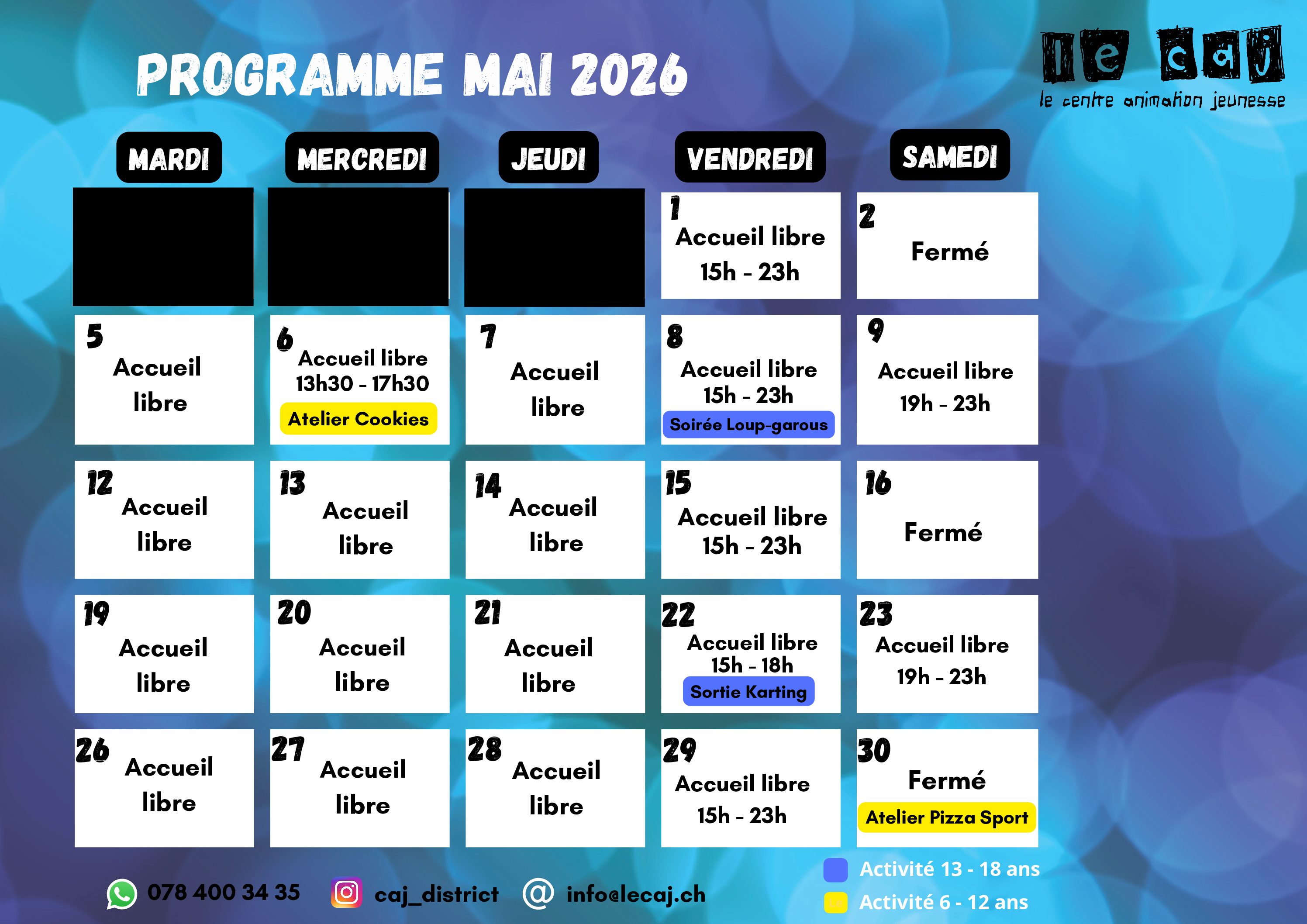 Durant les vacances scolaires le CAJ est ouvert du mardi au vendredi de 13h30 à 17h30